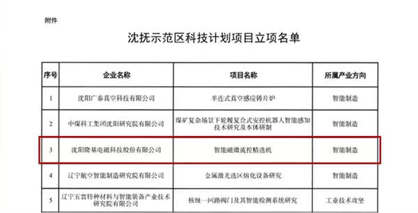 隆基智能磁微流控精選機,憑借智能化技術優勢成功入選沈撫示范區科技計劃項目 2022-01-24