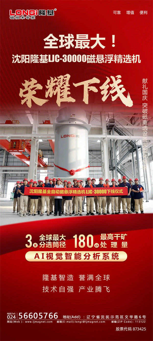 全球最大磁懸浮精選機LJC-30000在沈陽隆基下線。 2025-09-28