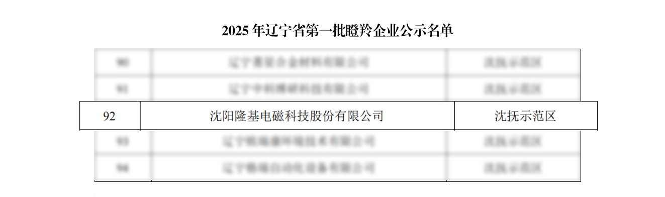 沈陽隆基憑借持續(xù)創(chuàng)新能力、高速成長態(tài)勢及前瞻戰(zhàn)略布局,成功入選“瞪羚企業(yè)”。 2025-03-20