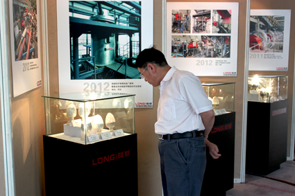 2013年(第四屆)中國礦業科技大會于8月30日-9月2日在江蘇省南京市召開,隆基做為磁性裝備制造業隆重參加本次盛會。中國礦業科技大會是國內頂級礦業技術高峰論壇和礦業設備展示平臺,匯聚眾多礦業領域專家學者及業內知名品牌企業,隆基總經理趙能平、副總經理李朝朋攜團隊參加此次會議。會議上,副總經理李朝朋現場發言,講述了隆基二十年來在礦業領域的發展腳步和取得的成果,現場圖片及礦樣展體現了隆基深厚的文化內涵,隆基為每一位客戶提供的產品都源于良好的實驗結果。參會嘉賓紛紛到隆基展示區及貴賓廳了解隆基在礦業領域發展的歷程及產品現場經典案例。