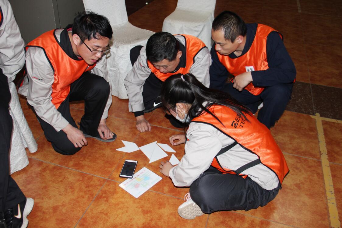 在為期三天的訓練中,6個小隊的成員們分別參與到了“漢諾塔”、“空中斷橋”、“盲人建房”、“杯子舞”、“虎口脫險”、“信任背摔”、“精益99秒”、“茫茫大!薄ⅰ捌咔砂濉、“運籌帷幄”十個經典管理學培訓項目中,一個個精心設計的拓展項目激發了大家濃厚的參與興趣與熱情。