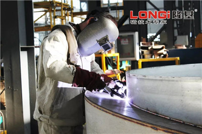 今年6月,一批出口的立環磁選機正在緊張的焊接中,客戶方為了監控質量特意飛到中國,想在生產過程中實地查看。當他看到產品一條條飽滿美觀的焊道時,連連稱贊,圍著設備拍下了二十余張細節照片,并表示通過這次參觀,對隆基制造,甚至中國制造的品質有了全新的認識,對雙方的合作更加憧憬。