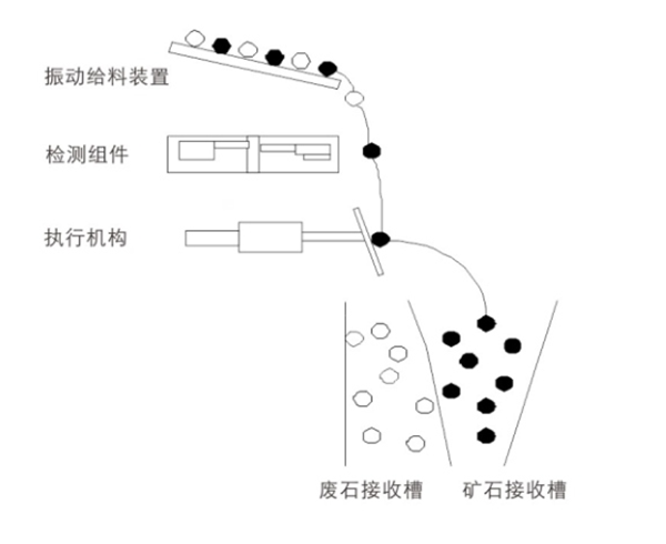 LPPC分選機就是根據X射線熒光原理設計的,其分選的工作原理如下圖。