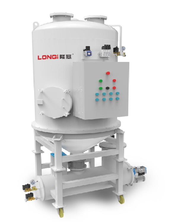 趙威介紹,隆基不斷推進產品迭代升級,2022年隆基將智能化技術融入到單晶硅除塵器研發中,打造出單晶硅全自動除塵器。