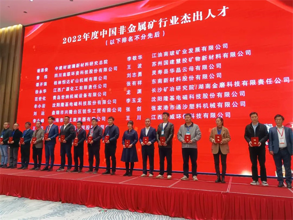 憑借在非金屬除雜提純方面的出色貢獻,隆基得到了主辦方的高度肯定,榮獲“2022年度中國非金屬礦行業優秀設備企業”;隆基非金屬領域資深工程師牟小巖、李玉龍榮獲“2022年度中國非金屬礦行業杰出人才”稱號。