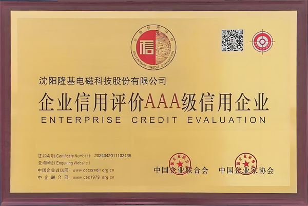 近日,沈陽隆基電磁科技股份有限公司榮獲由中國企業(yè)聯(lián)合會、中國企業(yè)家協(xié)會聯(lián)合頒發(fā)的“AAA級信用企業(yè)”稱號,展現(xiàn)出卓越的信用水平、經(jīng)營能力、綜合實力和發(fā)展?jié)摿Α?/p>