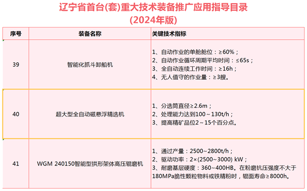 日前,遼寧省工業(yè)和信息化廳正式公示了2024年遼寧省首臺(套)重大技術(shù)裝備推廣應用指導目錄。在這份備受矚目的名單中,沈陽隆基自主研發(fā)的超大型全自動磁懸浮精選機脫穎而出,成功入選。首臺(套)重大技術(shù)裝備,作為實現(xiàn)重大技術(shù)突破、擁有知識產(chǎn)權(quán)的裝備產(chǎn)品,一直以來都是裝備制造業(yè)高質(zhì)量發(fā)展的風向標。長期以來,沈陽隆基積極推動技術(shù)裝備創(chuàng)新變革,加快推動磁選設(shè)備大型化、智能化、綠色化發(fā)展,持續(xù)激活發(fā)展新動能。此次入選的超大型全自動磁懸浮精選機,正是沈陽隆基創(chuàng)新成果的杰出代表。