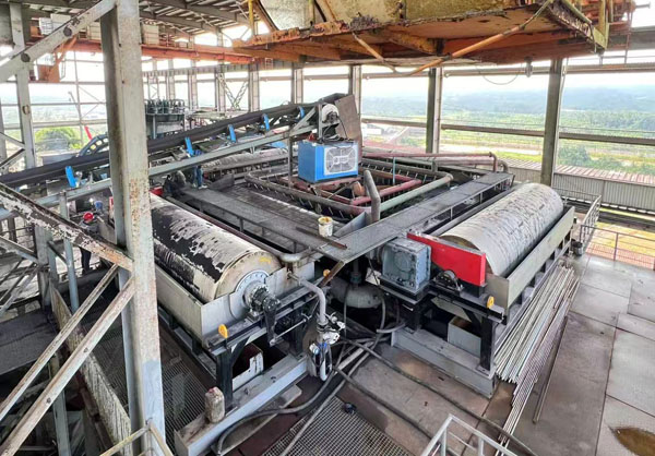 該設(shè)備在核心參數(shù)上以硬核表現(xiàn)樹立了大型化、綠色化新標(biāo)桿:設(shè)備筒體尺寸達(dá)到1500mm(直徑)×6000mm(筒長),樹立了全球筒式磁選機(jī)大型化的新尺度,開啟了超大型磁選機(jī)的新時(shí)代;其礦漿處理量高達(dá)1200m³/h,干礦處理量達(dá)到400t/h,強(qiáng)大的單機(jī)處理能力直接減少了設(shè)備臺(tái)數(shù)與占地面積,簡化了工藝流程,從系統(tǒng)層面降低了能耗與運(yùn)營成本,體現(xiàn)了集約化生產(chǎn)的綠色內(nèi)涵;同時(shí),磁滾筒表面磁感應(yīng)強(qiáng)度≥4000Gs,為大規(guī)模礦漿穩(wěn)定高效分選提供了可靠保障,高效分選意味著更高的資源回收率和更少的尾礦排放,從源頭提升了資源利用效率。
